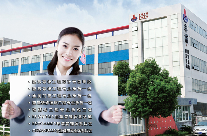 公司現(xiàn)具備建筑幕墻工程設計專項甲級資質(zhì)、建筑幕墻工程專業(yè)承包一級、建筑裝修裝飾工程專業(yè)承包一級、鋼結構工程專業(yè)承包三級、建筑門窗行業(yè)資格產(chǎn)品制造一級、建筑門窗行業(yè)資格產(chǎn)品安裝一級、江蘇省標準化窗推廣證企業(yè)。